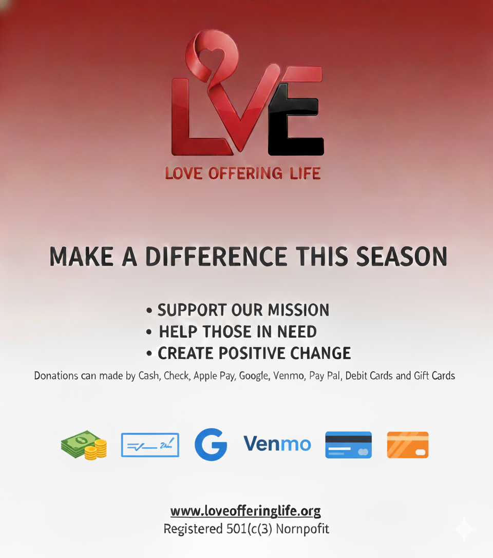 Love Offering Life has it’s Clothing, Food, Toy and Monetary Donation programs ongoing all year long. Please Call, Email or visit our office to donate at any time Monday through Friday.